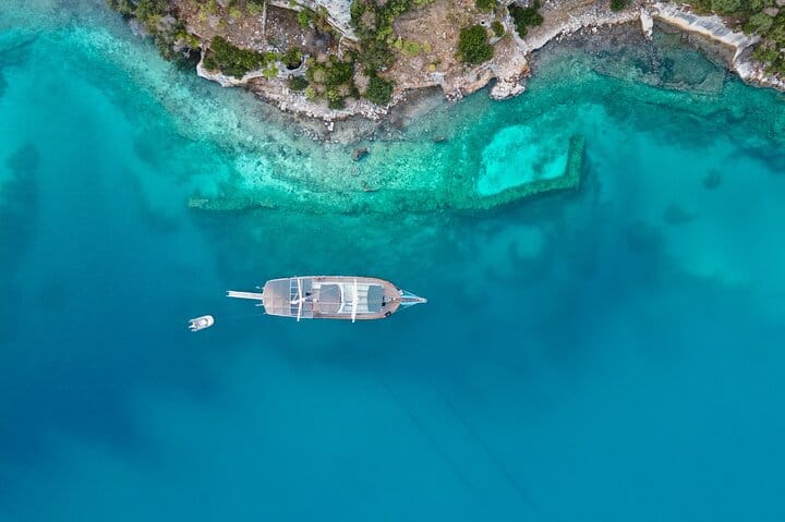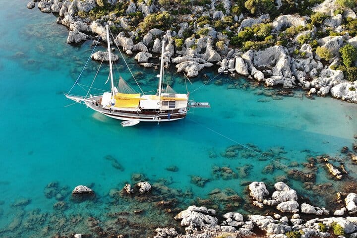 Sit back and relax as we take you across the sea discovering intriguing caves and picturesque bays, such as Esmeralda Bay and Burç Bay, famous for their cool temperature. Take in the breathtaking views from Simena Castle, before embarking on a trip to archeological sites on land, including the Ancient City of Myra.